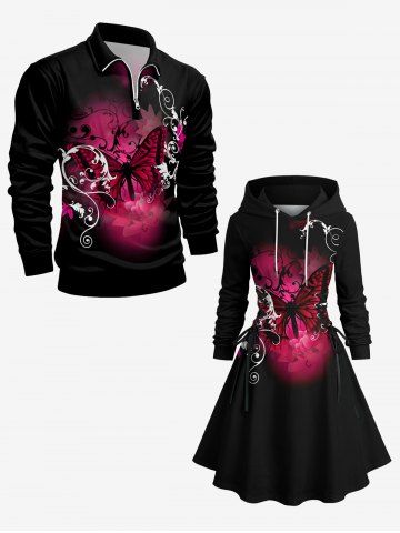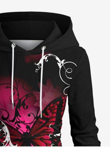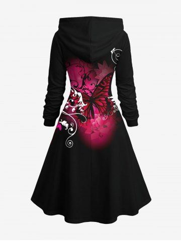 TENDANCE DU MOMENT > Robe à capuche grande taille à imprimé papillon et fleurs, lacée et à cordon