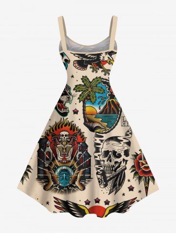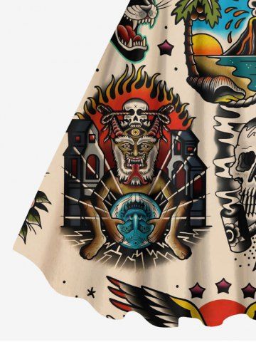 Robe débardeur hawaïenne grande taille à imprimé cocotier, fleurs d'hibiscus, crâne, feu, flamme, aigle - Café Lumière - 6x