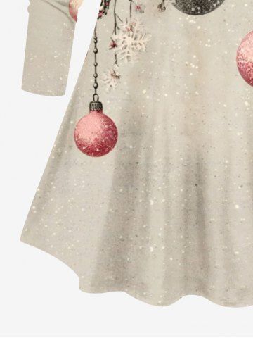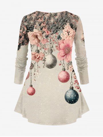 TENDANCE DU MOMENT > T-shirt à manches longues grande taille avec imprimé de boules de Noël et de fleurs