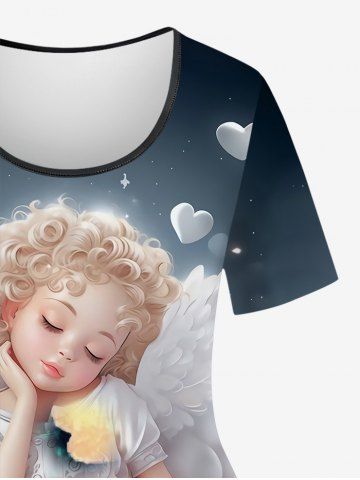 TENDANCE DU MOMENT > T-shirt Renaissance grande taille à imprimé floral, ailes d'ange, cœur, dégradé de couleurs