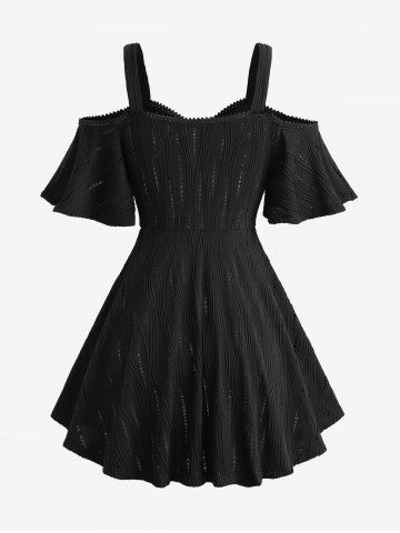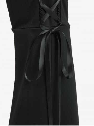 Haut jacquard à imprimé écossais gothique, fermeture éclair, ajouré, ourlet festonné, pantalon évasé asymétrique haut-bas, tenue grande taille - Noir - Noir