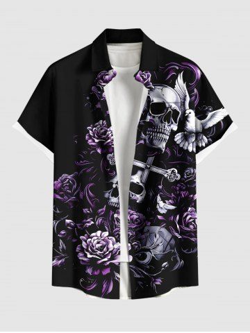 Maillot de bain grande taille à imprimé tête de mort et oiseau, motif rose, fleur, croix, tenue assortie pour couple - Noir - Noir