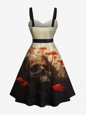 Tenues d'Halloween pour Couple> Tenue assortie grande taille pour couple, motif crâne, champignon, forêt ensoleillée, Halloween