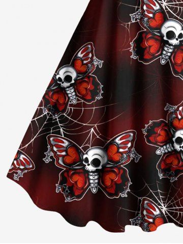 Tenue assortie grande taille pour couple, motif tête de mort, papillon, toile d'araignée, Halloween - Rouge Vineux