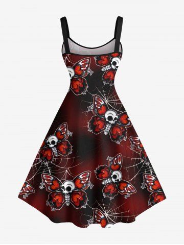 Plus Size Halloween Skull Butterfly Spider Web Print Tank Dress