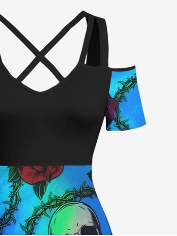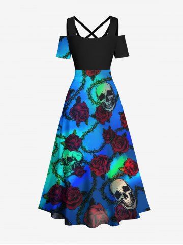Tenues d'Halloween pour Couple> Tenue assortie grande taille pour couple, motif tête de mort, rose, vigne, imprimé ombré
