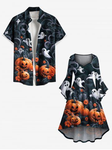 Tenue assortie grande taille pour couples, imprimé citrouille fantôme et fleurs, pour Halloween - Noir - Noir