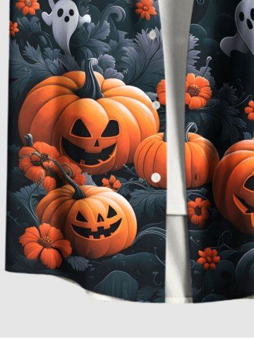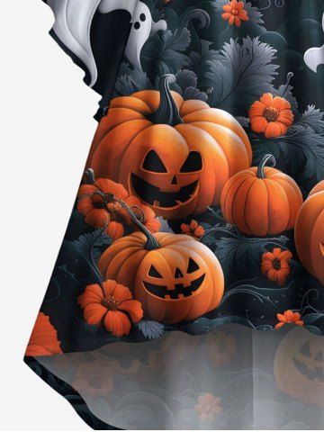 Tenues d'Halloween pour Couple> Tenue assortie grande taille pour couples, imprimé citrouille fantôme et fleurs, pour Halloween
