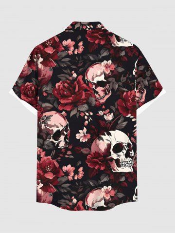 Tenue assortie grande taille pour couples, motif tête de mort, rose, fleur et feuille, pour Halloween - Noir - Noir