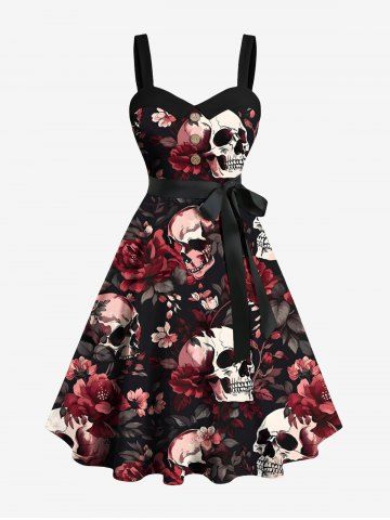 Tenues d'Halloween pour Couple> Tenue assortie grande taille pour couples, motif tête de mort, rose, fleur et feuille, pour Halloween
