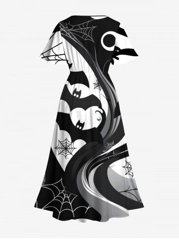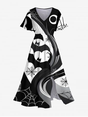 Tenue d'Halloween grande taille à imprimé chauve-souris et toile d'araignée pour couples - Noir - Noir