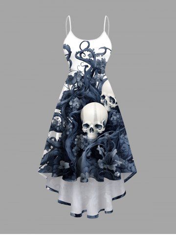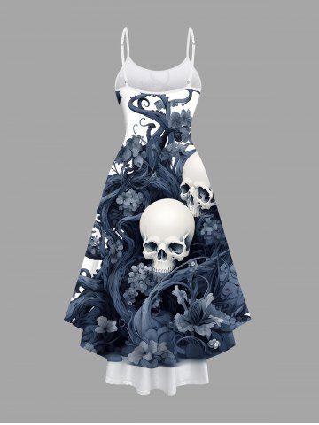 Tenue d'Halloween grande taille à imprimé tête de mort, poulpe et fleurs pour couples - Bleu Marine - Bleu Marin