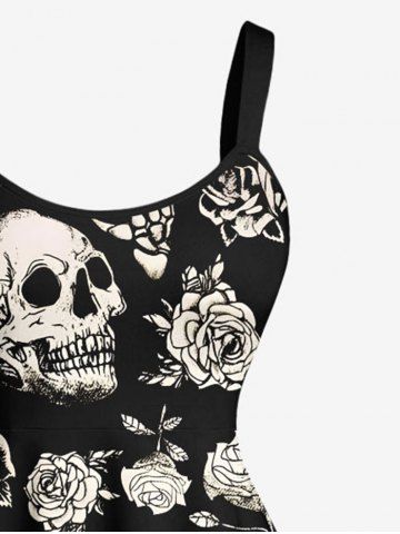Plus Size Halloween Skulls Rose Flower Skeleton Claw Print Tank Dress