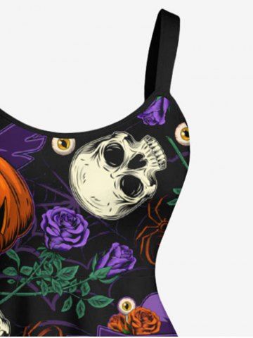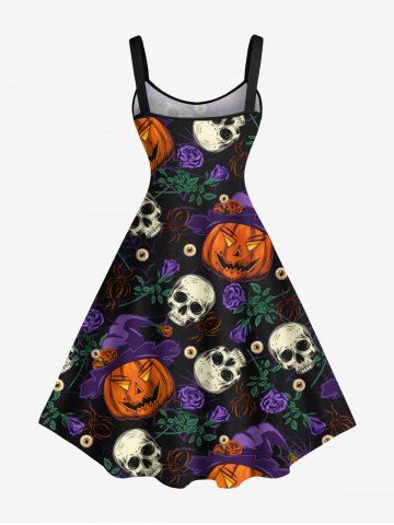 Tenue d'Halloween grande taille assortie pour couples, motif tête de mort, citrouille, fleur, feuille, branche - Noir - Noir