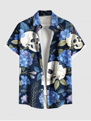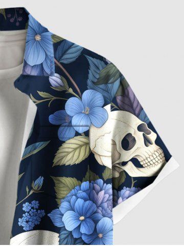 Tenue de plage hawaïenne assortie grande taille à imprimé tête de mort, fleur, feuille, branche, pour couple - Noir - Noir
