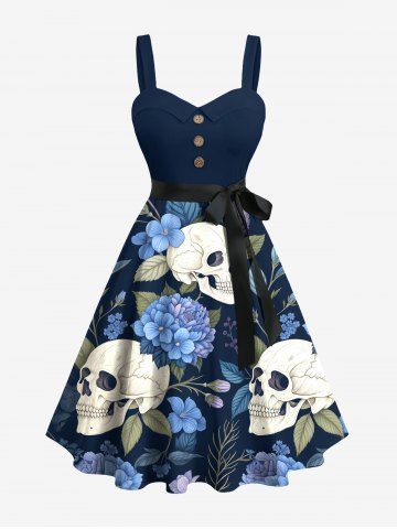 Tenues d'Halloween pour Couple > Tenue de plage hawaïenne assortie grande taille à imprimé tête de mort, fleur, feuille, branche, pour couple