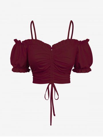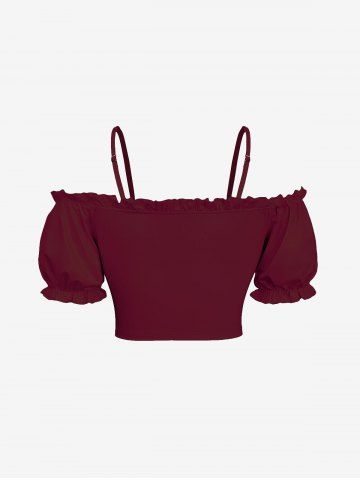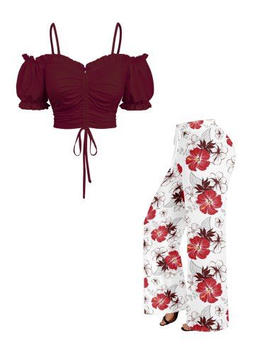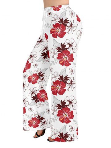 Ensemble assorti grande taille à imprimé hibiscus, style hawaïen - Rouge Foncé