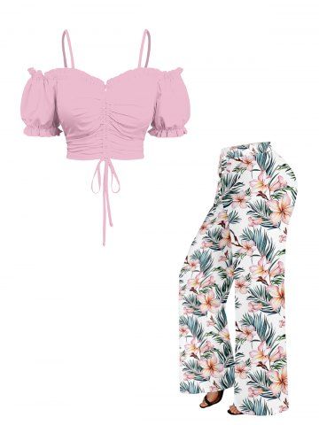 Ensemble assorti Hawaï à imprimé tropical fleurs et feuilles, grandes tailles - Rose Clair - Rose Léger