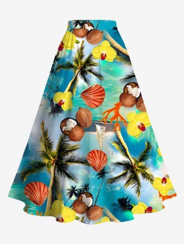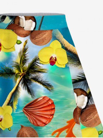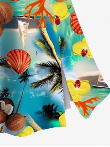 Tenues Graphiques> Ensemble assorti Hawaï grande taille à imprimé coquillages, cocotiers et fleurs