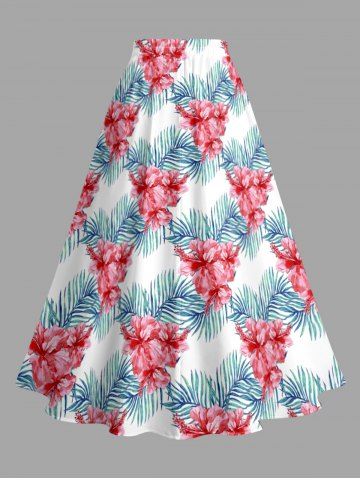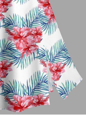 Tenues Graphiques> Ensemble assorti Hawaï grande taille à imprimé feuilles tropicales et fleurs d'hibiscus