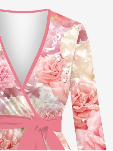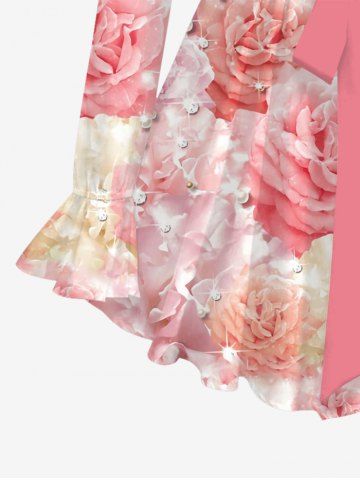 Tenues Graphiques> Ensemble de Blouse Grande Taille Rose et Faux Cristal Brillant Ombre Imprimé Rose 3D