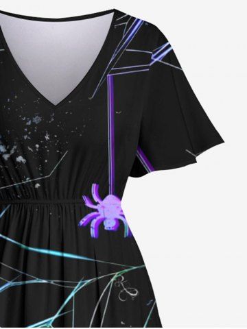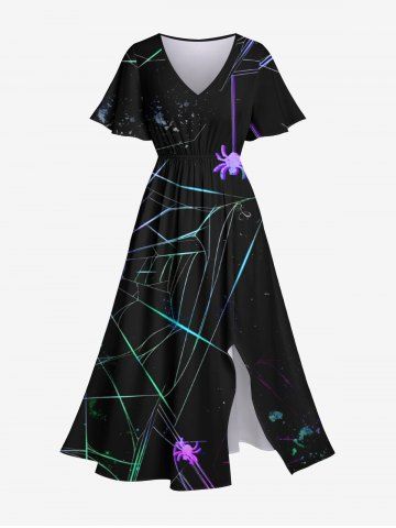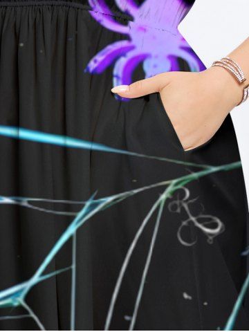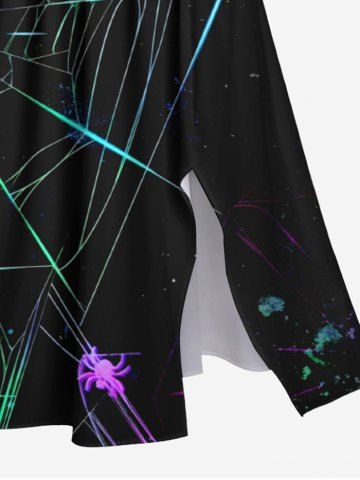 Ensemble Costume D'Halloween Imprimé Toile D'araignée Ombre Brillant Grande Taille pour les Femmes - Noir - Noir