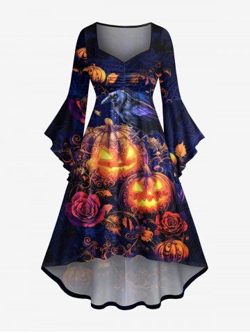 t*****45Plus Size Pumpkin Lantern Crow Rose Flower Print Halloween Ruched High Low Asymmetric DressColor: BLACK Size: 5Xthis item was assembled very well. the material is sturdy but lightweight. it's not a fragile piece of clothing. it looks terrific. it does tend to run a little bit large.