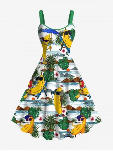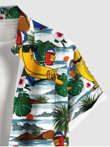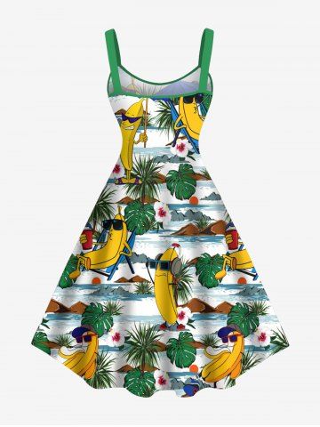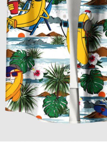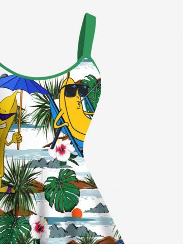 Tenues Hawaïennes Assorties> Banana Coconut Tree Tropical Leaf Print Plus Size Matching Hawaii Beach Outfit For Couples