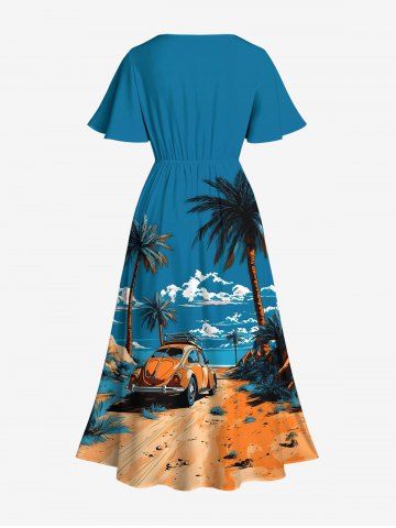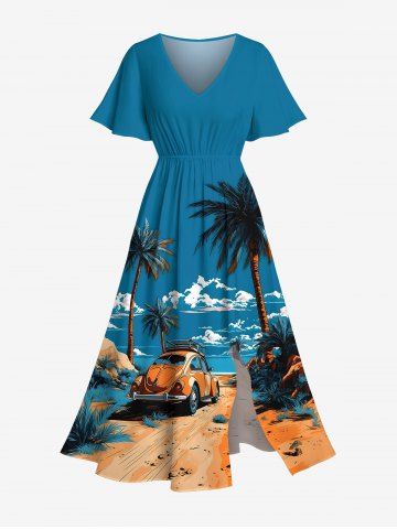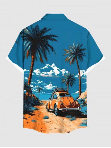 Chemises Pendante de Plage Ciel Nuage et Voiture Imprimés de Grande Taille Assortis - Bleu - Bleu