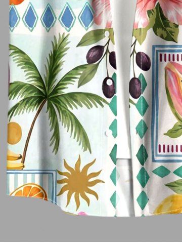 Tenues Hawaïennes Assorties> Coconut Tree Hibiscus Flower Fruit Sun Print Plus Size Matching Hawaii Beach Outfit For Couples