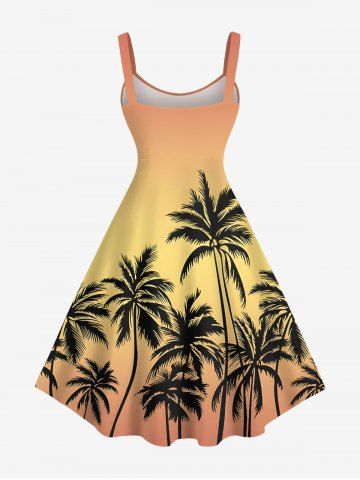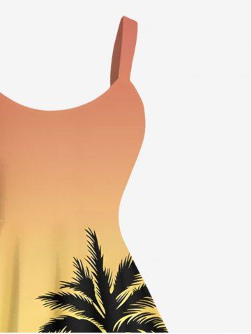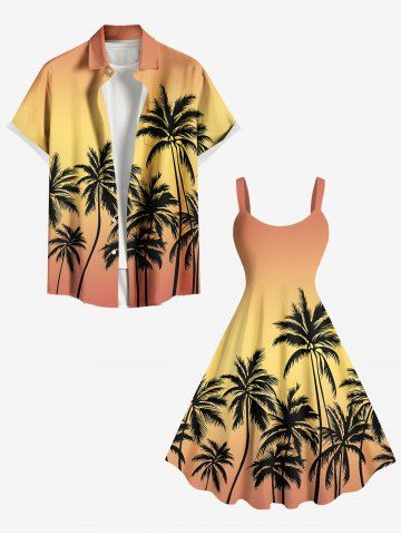 Coconut Tree Ombre Print Plus Size Matching Hawaii Beach Outfit For Couples - Orange Clair