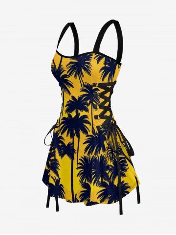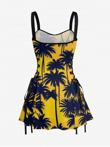 Coconut Tree Print Matching Hawaii Beach Outfit For Couples - Jaune - Jaune