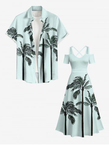 Tenues Hawaïennes Assorties > Coconut Tree Print Plus Size Matching Hawaii Beach Outfit For Couples