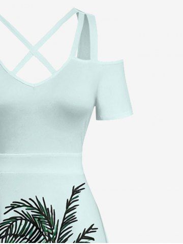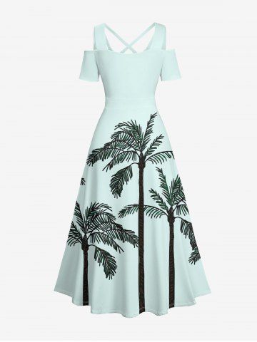 Coconut Tree Print Plus Size Matching Hawaii Beach Outfit For Couples - Bleu Clair - Bleu Clair