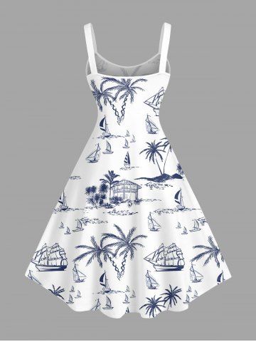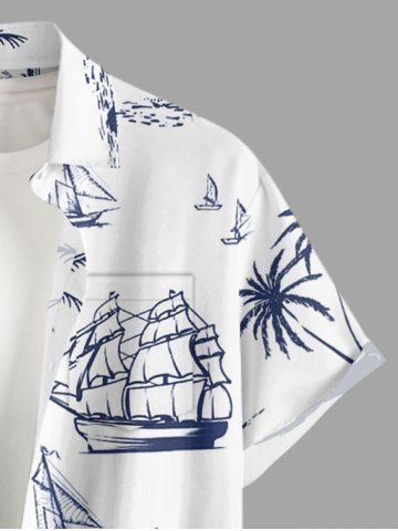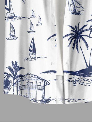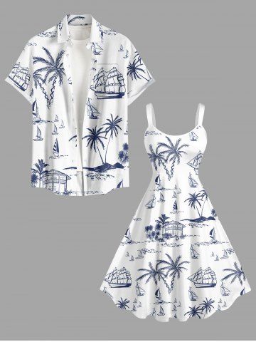 Coconut Tree Sailboat Print Plus Size Matching Hawaii Beach Outfit For Couples - Blanc - Blanc