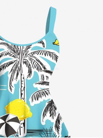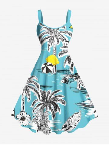 Coconut Tree Sea Tropical Leaves Pineapple Floral Print Plus Size Matching Hawaii Beach Outfit For Couples - Bleu Clair - Bleu Clair