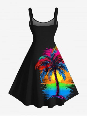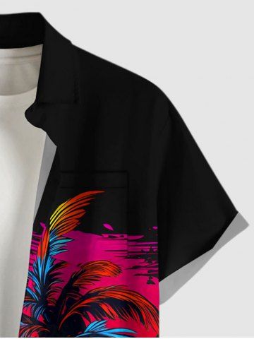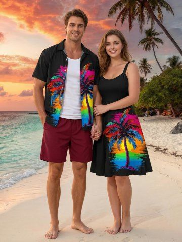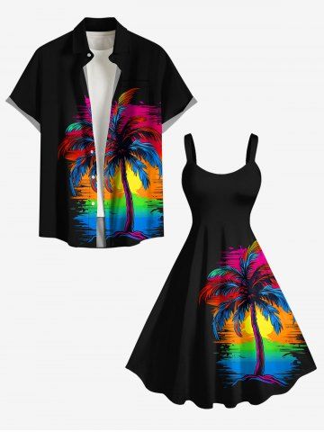 Colorful Coconut Tree Sun Print Plus Size Matching Hawaii Beach Outfit For Couples - Noir - Noir