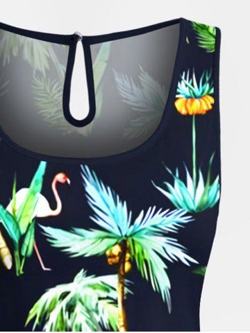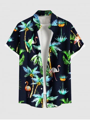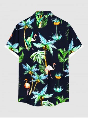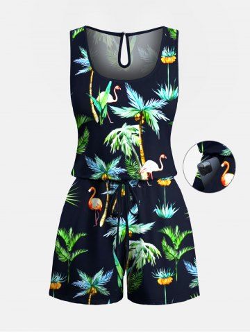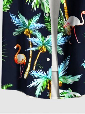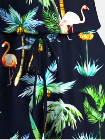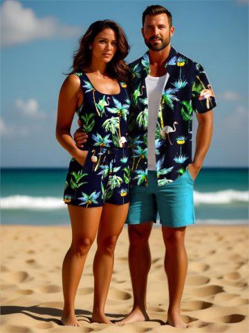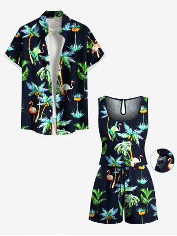 Tenues Hawaïennes Assorties> Combi-Short de Plage Hawaïen Flamant et Plage Imprimés de Grande Taille pour Couple