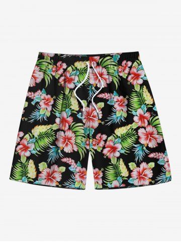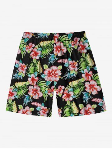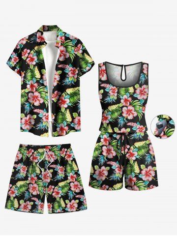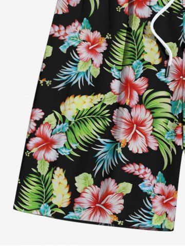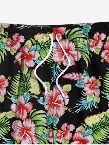 Tenues Hawaïennes Assorties > Combishort de Plage à Imprimé Feuille Tropicale Grande Taille