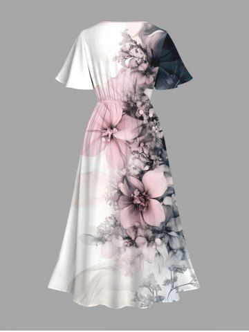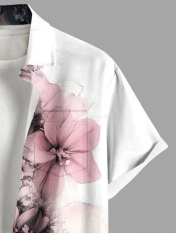 Contrast Color Flowers Print Plus Size Matching Hawaii Beach Outfit For Couples - Blanc - Blanc