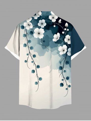 Tenue de plage hawaïenne assortie grande taille, motif aquarelle, motif branches de fleurs, encre ombrée, pour couples - Vert - Vert