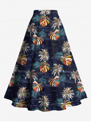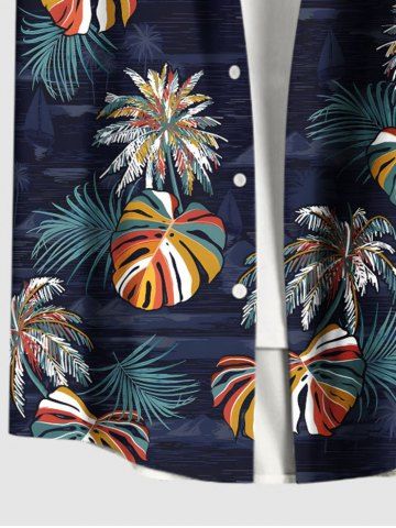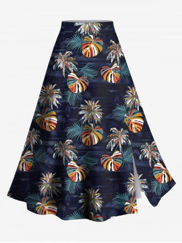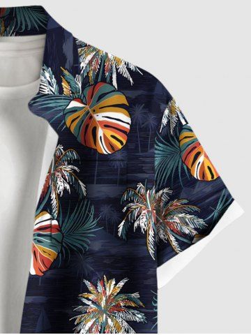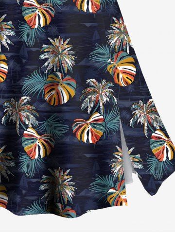 Tenues Hawaïennes Assorties> Tenue de plage hawaïenne assortie grande taille à imprimé feuilles tropicales de cocotier coloré pour couples
