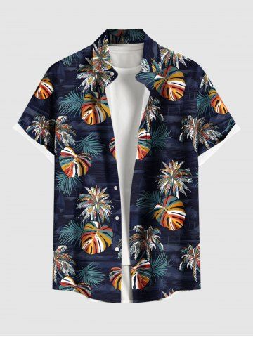 Tenue de plage hawaïenne assortie grande taille à imprimé feuilles tropicales de cocotier coloré pour couples - Noir - Noir