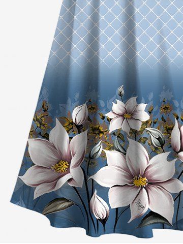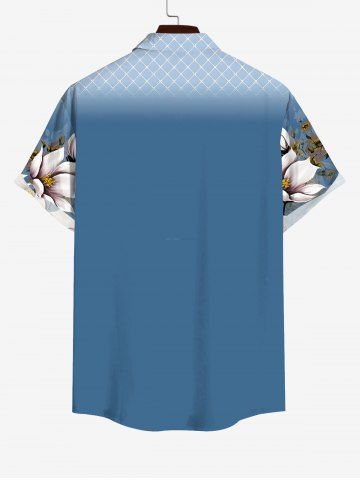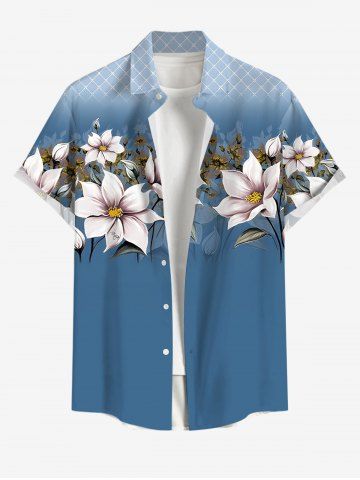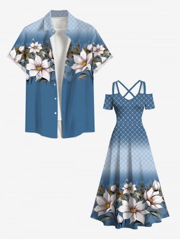 Tenue de plage hawaïenne assortie grande taille à imprimé floral et feuilles à carreaux ombré pour couples - Bleu - Bleu
