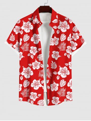 Flower Tropical Leaf Print Plus Size Matching Hawaii Beach Outfit For Couples