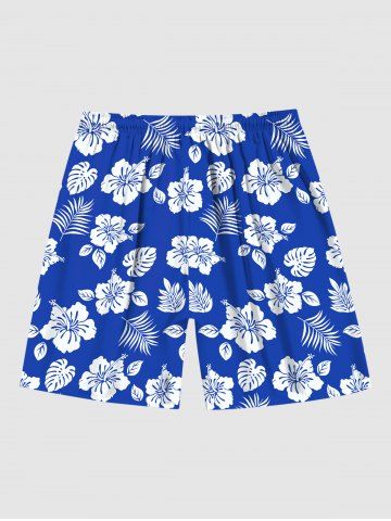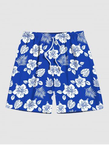 Tenues Hawaïennes Assorties > Contrastant Imprimé Feuilles et Cocotier Grande Taille pour la Plage