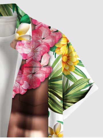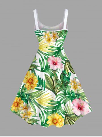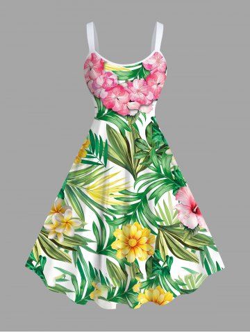 Tenues Hawaïennes Assorties> Tenue de plage hawaïenne assortie grande taille à imprimé couronne de fleurs et feuilles tropicales pour couples