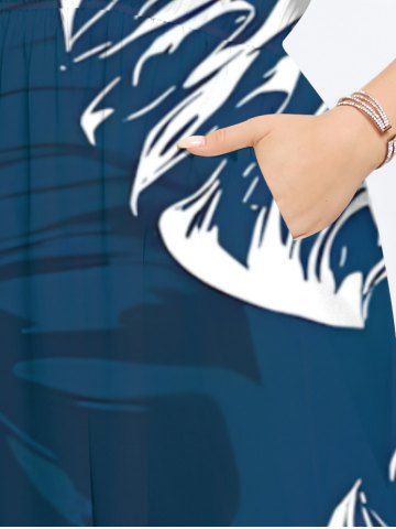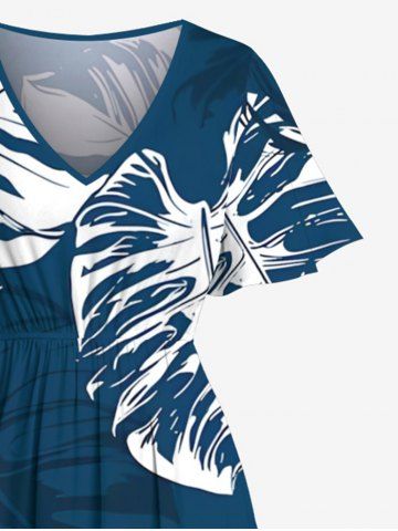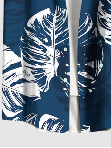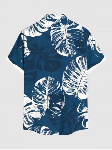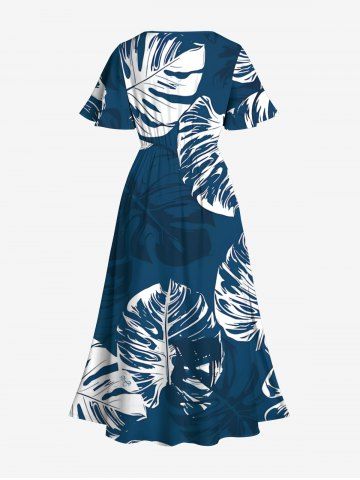 Tenue de plage hawaïenne assortie grande taille à imprimé feuilles tropicales pour couples - Bleu - Bleu