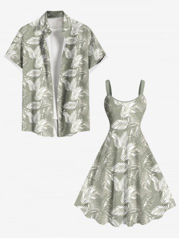 Costume de Plage Feuille Elliptique Imprimé de Grande Taille pour Couples - Vert Clair - Vert Clair