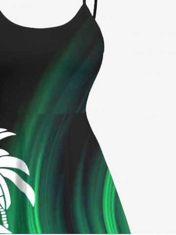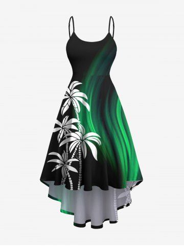 Costume de Plage Grande Taille à Paillettes Longueur Cheville Imprimée Cocotier 3D pour Femme - Noir - Noir